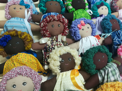 e conta com cerca de 20 participantes, que confeccionam bonecos de pano.